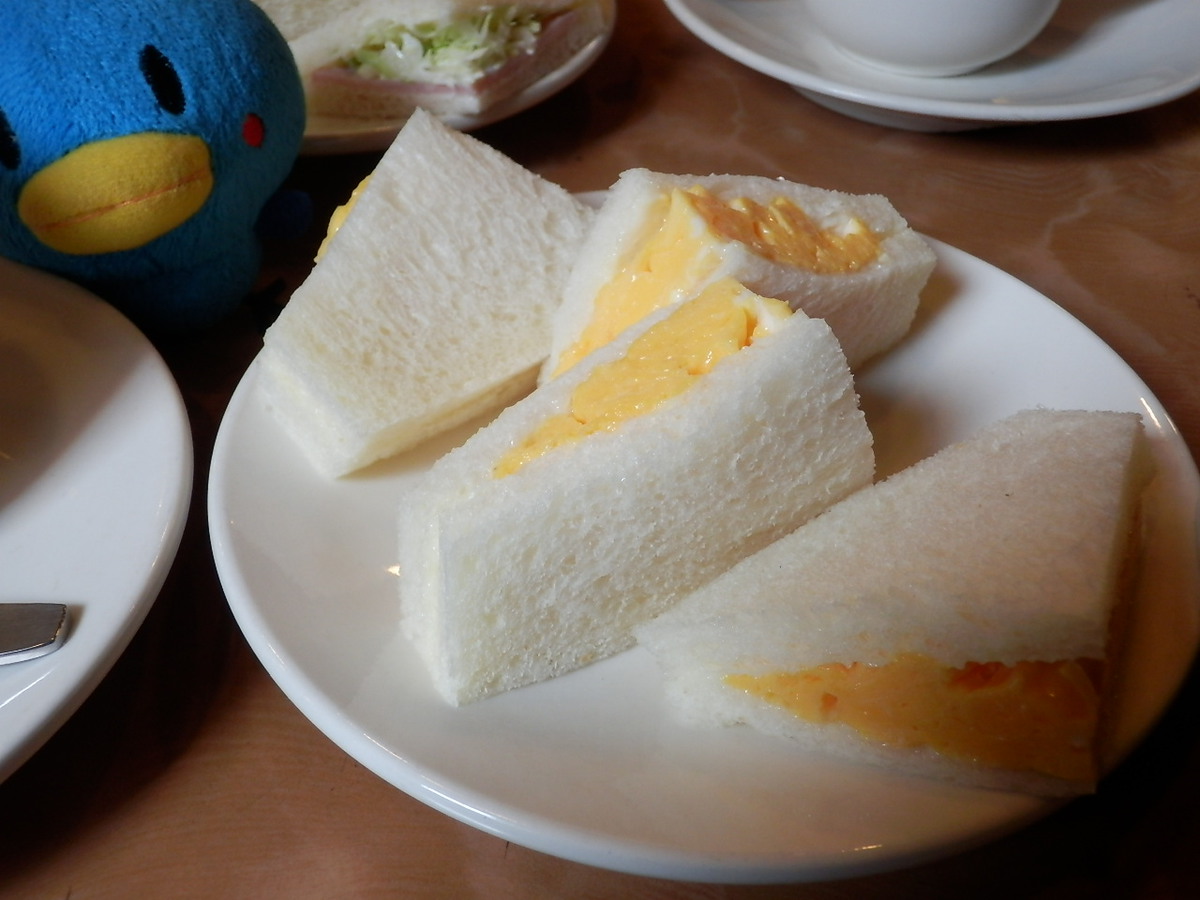 モーニングはたまごサンド、ハムサンド、トースト。