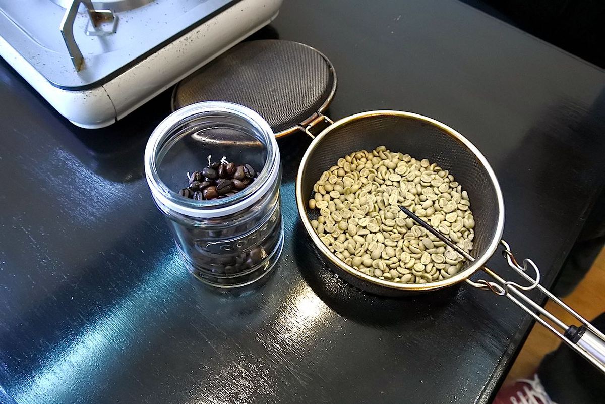 それも焙煎機ではなく、少量の豆を手で焙煎しています。